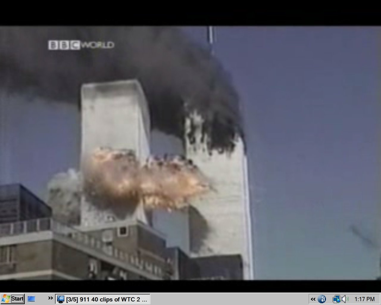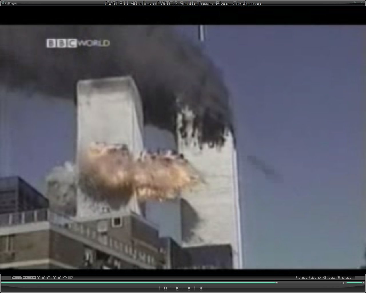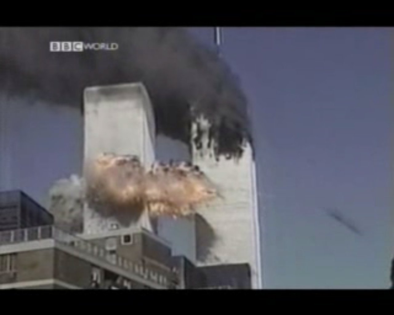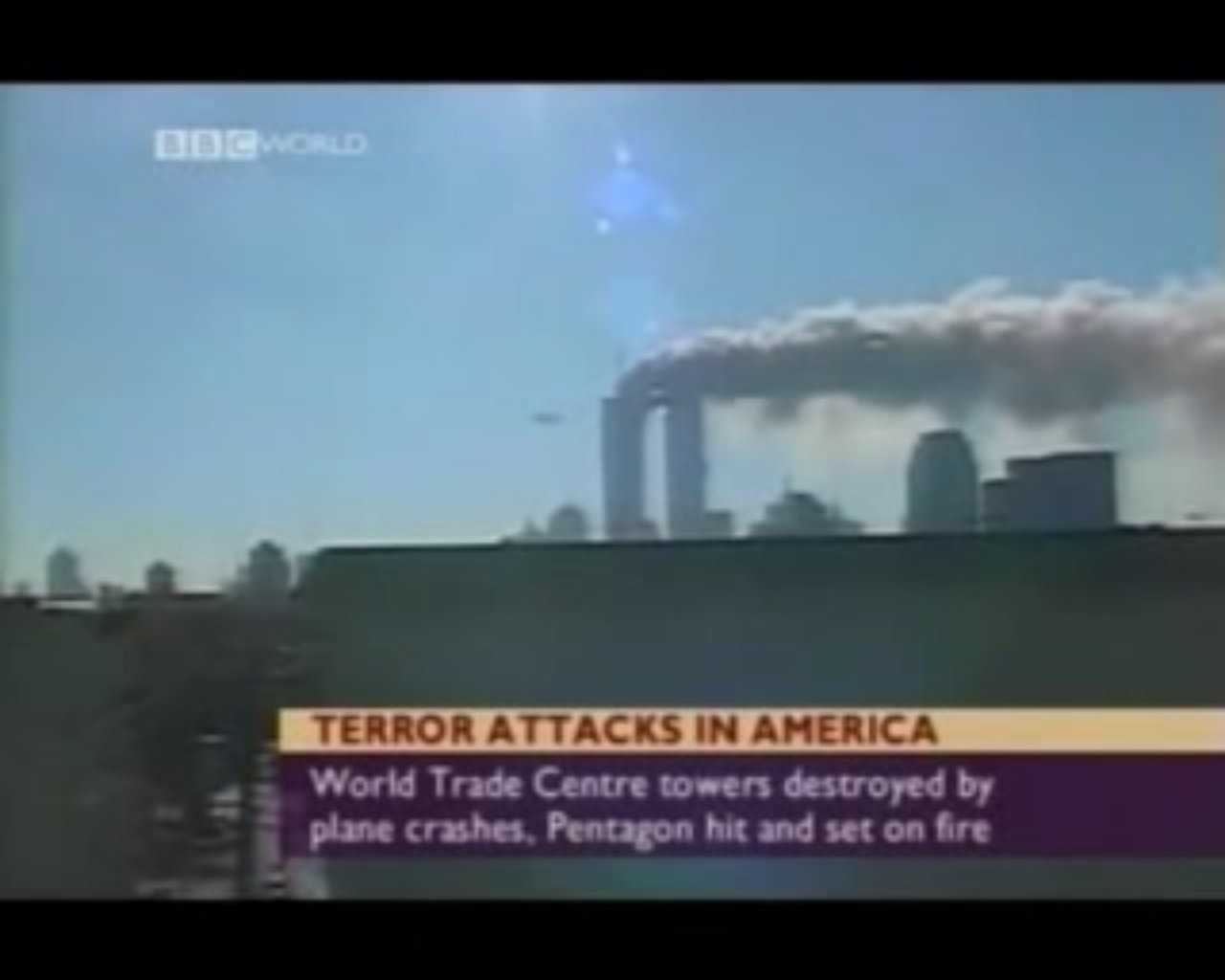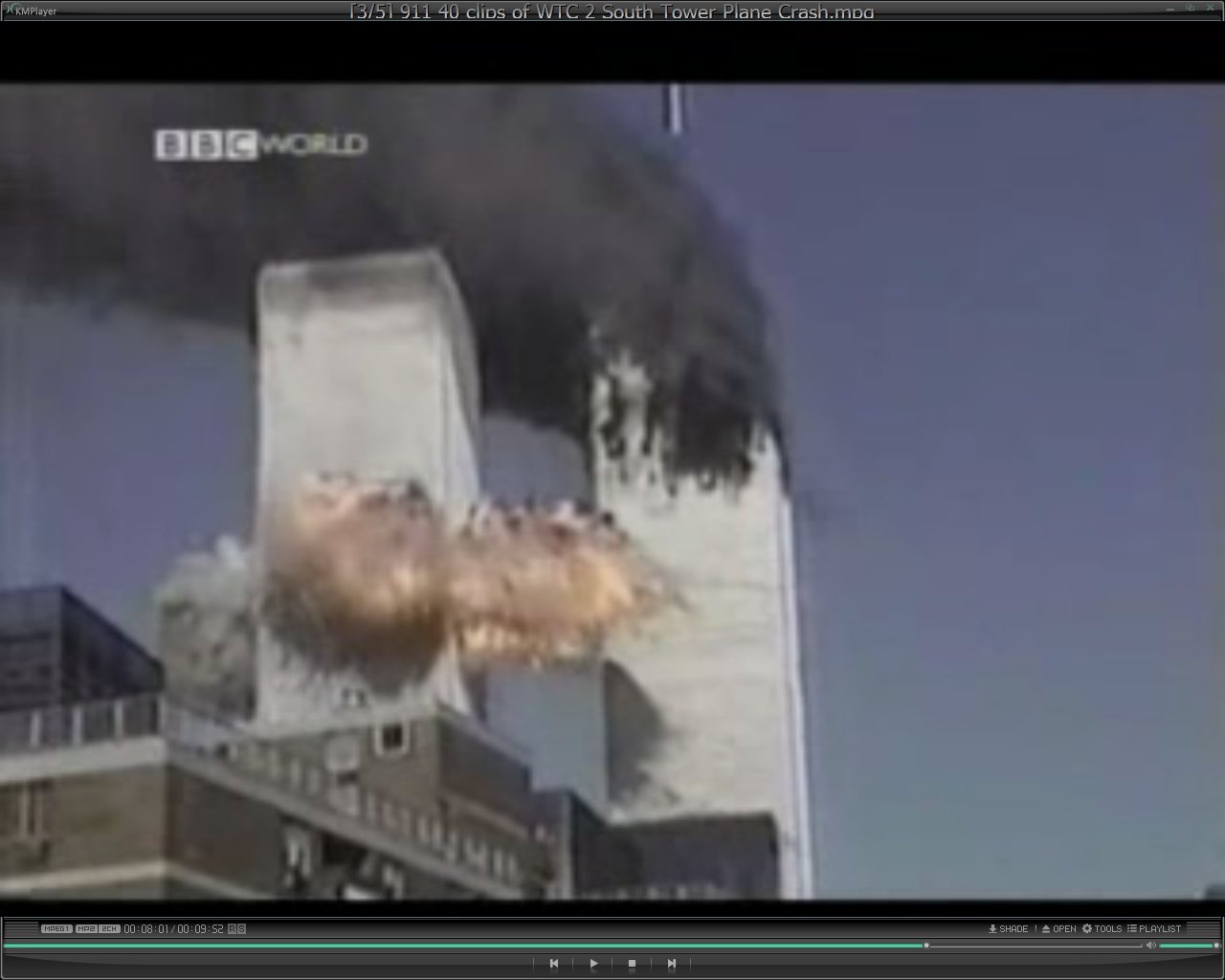 A few frames are omitted; then the object seems to appear just above where "Flight 175" was, right next to WTC2, only an instant earlier...